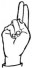 На ћирилици написано РАДНА ВУКАЈЛОВИЋ састоји се из 15 слова [?]. Исписано ћириличном једноручном азбуком за глувонеме: